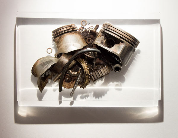 My artistic approach revolves around non-renewable energies that surround me. Instead of trying to illustrate these urban vibrations that influence me, I take the object imbued with stress and use it as the subject of my research. By putting these recycled items in the foreground, I try to bring out their metaphysical energy that connects them with human activity. My motivation resides in the technical challenge that implies objects left behind. I remain in awe of the constructed object, imagined, invented, marked by wear and fatigue. Like an anthropologist, I am endlessly in search of traces left by Human. I use the artwork as a durable vehicle to present my research in a form that recall the collage. In short, my work should allow both to satisfy an aesthetic expectation and also cause the viewer to question the object and its relationship to the urban world; it must create its own semantics, its own laws. I want to bring the viewer to think on the notion of back-and-forth between the immanent and the transcendent.